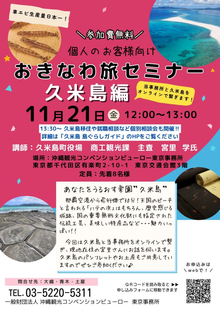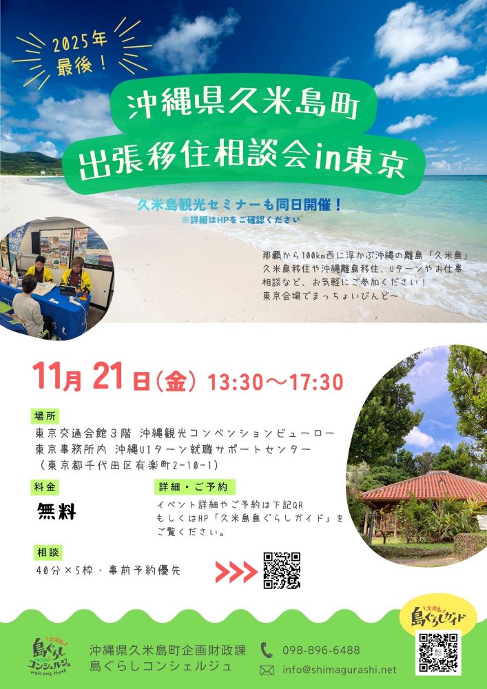 11月21日(金) 久米島町主催「出張移住相談会in東京」を開催します!
