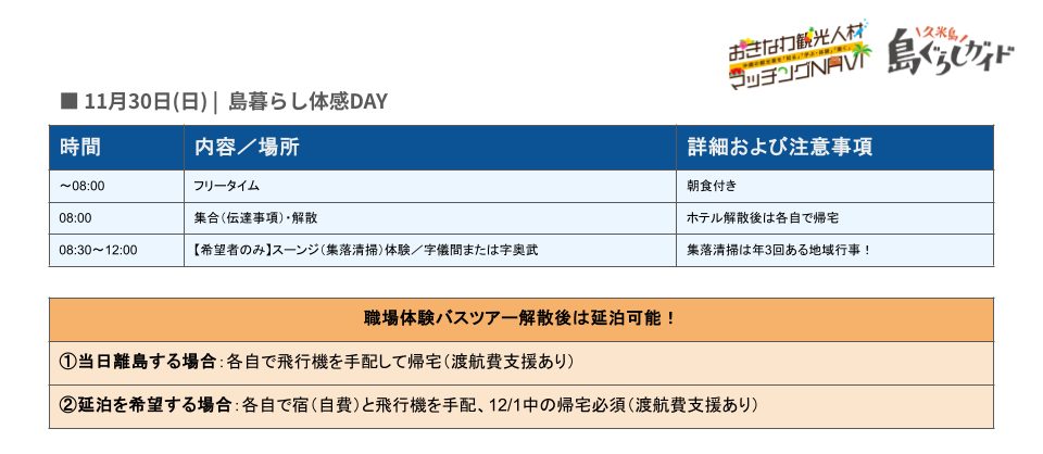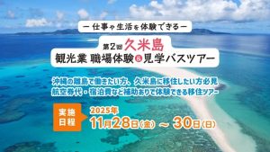 【まもなく申込締切!】11月28日(金)〜11月30日(日)\全国どこからでも渡航費支援あり/「第2回 久米島観光業職場体験&見学バスツアー」参加者大募集!