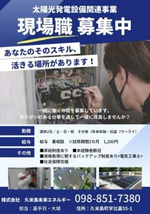 [][] 【久米島未来エネルギー】現場スタッフ募集中