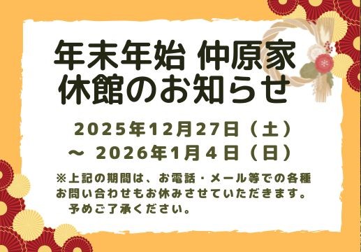 ※期間中は、お電話・メール・SNSでのお問い合わせもお休みさせていただきます。皆さまには大変ご不便をおかけいたしますが、ご理解のほどよろしくお願い申し上げます。